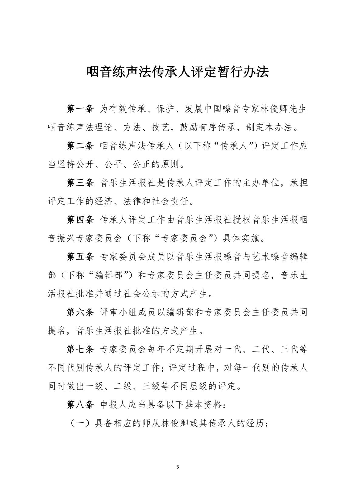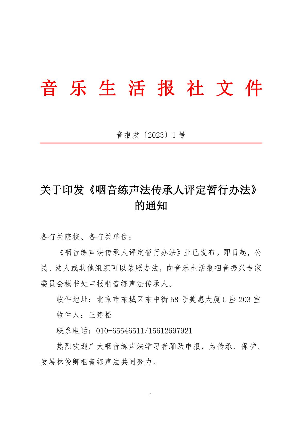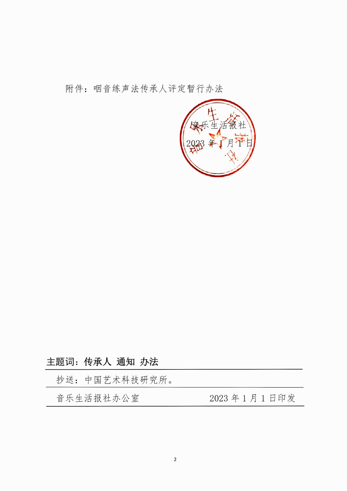 音樂生活報社關于印發(fā)《咽音練聲法傳承人評定暫行辦法》的通知