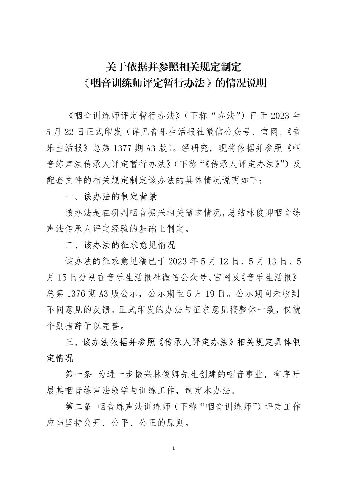 關于依據并參照相關規定制定《咽音訓練師評定暫行辦法》的情況說明