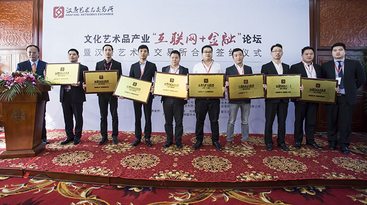 2015年10月29日,“文化藝術品產業‘互聯網+金融’論壇暨漢唐交易所授權與合作簽約儀式”在京隆重召開。文化部、中宣部、人民日報相關領導,各界代表、金融文化界精英、頂級行業專家、各大實力經紀商等嘉賓齊聚北京民族文化宮,共論了“互聯網+”時代下文化藝術品產業現狀、未來和發展,見證了北京天首基金、北京浩正投資、人民日報《人文歷史》、韓國友利銀行、韓國美術協會、韓國郵票商協會等幾十家中韓機構與漢唐藝術品交易所合作的簽約。